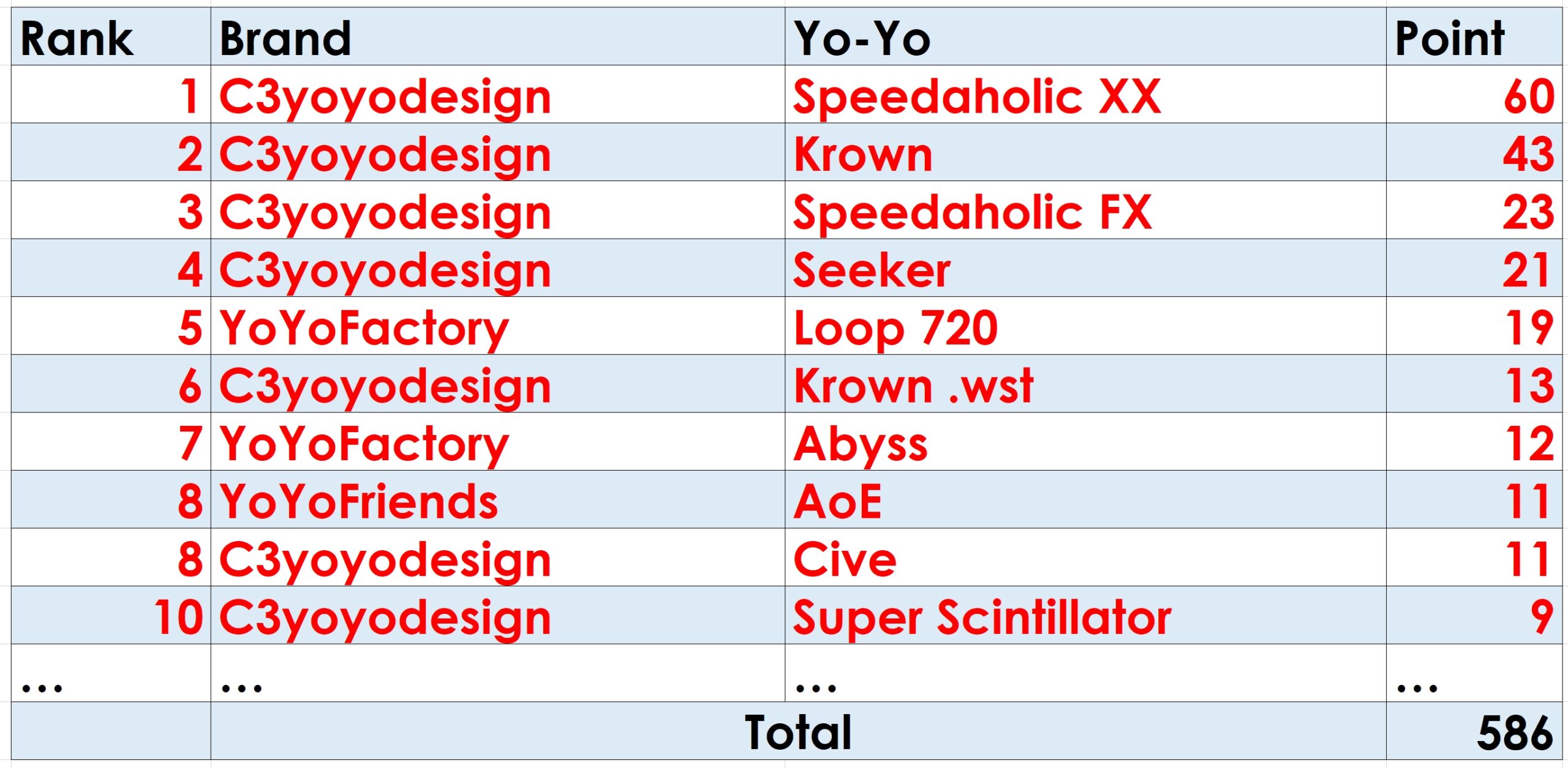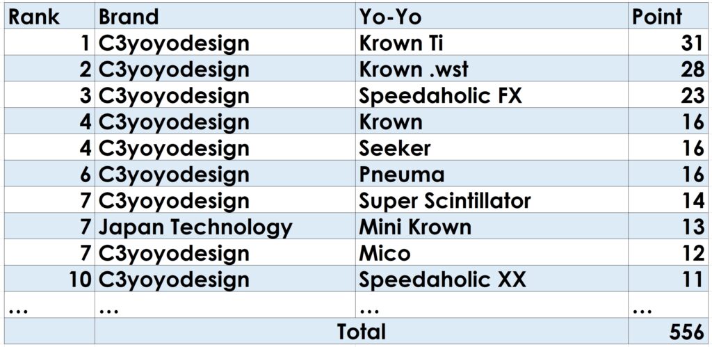 We conducted a survey in Japan to find the most recommended yo-yo models that people used this year.