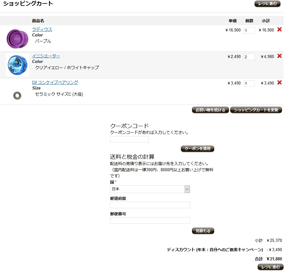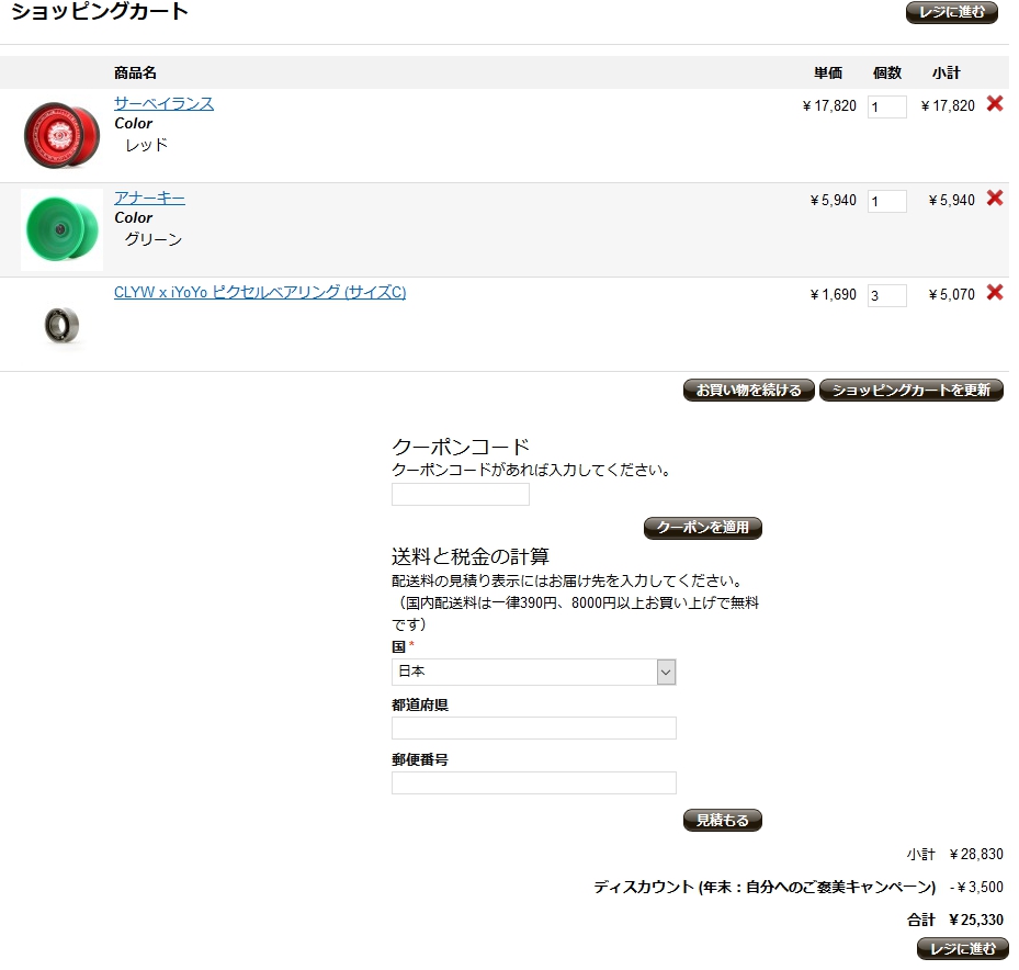 お買い上げ総額が2万円以上かつ、ベアリングがカートに入っていると自動で割引がかかります。