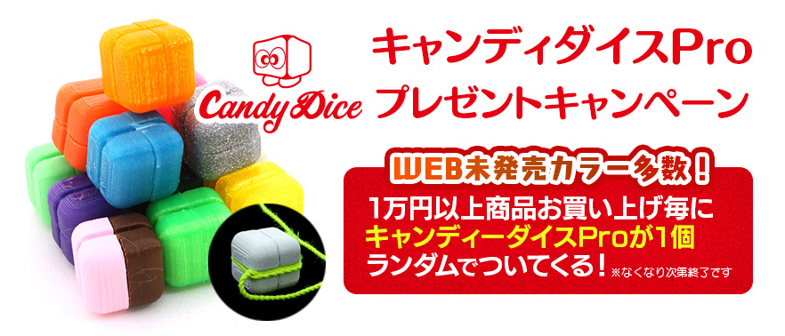 商品合計金額1万円お買い上げごとに1個、WEB未発売カラーのキャンディーダイスプロをプレゼント。