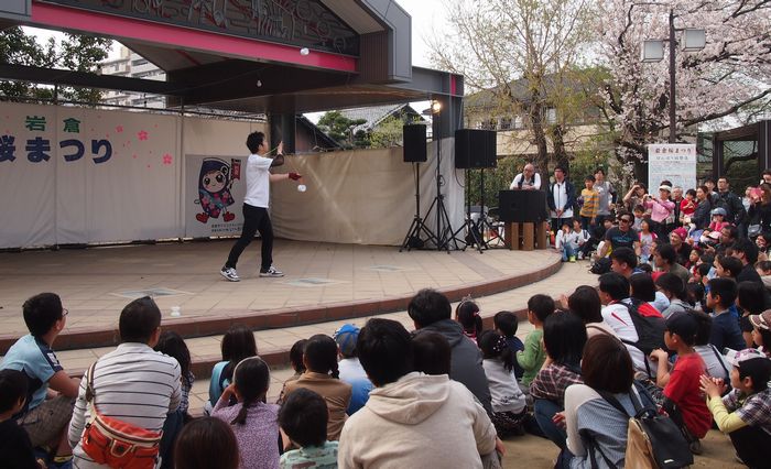 そこで恒例イベントとなっているのが「岩倉桜まつり」で、リワインドのメンバーによるヨーヨーパフォーマンスも行っています。