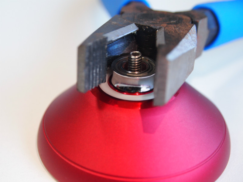 【写真3:クラウン(C3ヨーヨーデザイン)】穴にしっかりロックする。ボディにもキズをつけないよう、丁寧にやること。ゆっくりやれば、ベアリングはずしはカンタンにできる。