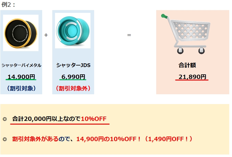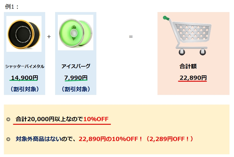 - 新商品、限定商品、セール商品、セット商品など、一部商品が割引対象外ですが、合計金額の対象にはなります。割引対象外商品についてはこちら