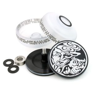 既に手に取ってくださった方はご存知かと思いますが、上記写真のようにパーツが分解できます。ハブパーツ(アルミニウム製)を中心に構成され、シェル(ボディ)の入れ替え・カスタマイズが可能という、近年では珍しい”遊び”要素のあるヨーヨーに仕上がりました。