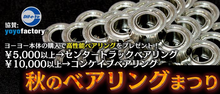 ヨーヨーファクトリーとDif-e-Yo協賛でセンタートラックベアリング、コンケイブベアリングをプレゼント!している秋のベアリングまつり。9/29 (月)までです!残り時間は後わずか。お忘れなく!