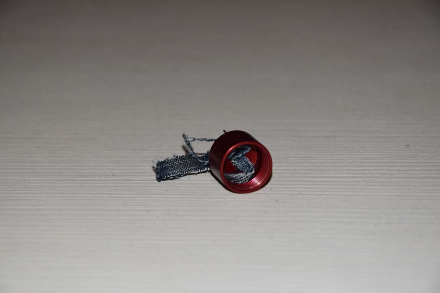 針金を二つ折りにし、裏側に二本の先端が来るようにディスクスタックに通し、二本の先端を広げ、抜けないようにします。。
