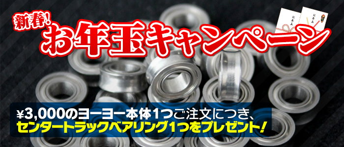 新年恒例のお年玉キャンペーンを開催中。3,000円以上のヨーヨーご購入でセンタートラックベアリングをプレゼント!この週末で無くなりそうなので、お早めにどうぞ!