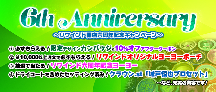 リワインド6周年記念キャンペーン7日まで!