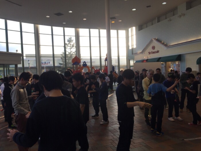 ヨーヨーをしている人だけでなく、道行く人も集まって来ます。