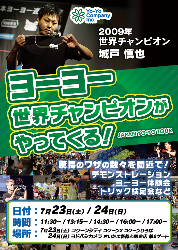 今週末は埼玉!23(土)はコクーンシティ、24(日)はヨドバシカメラさいたま新都心駅前店です!今週を皮切りに、毎週末各地でパフォーマンスを行います。ヨーヨーの楽しさをできるだけ多くの人に知ってもらえるようがんばります!