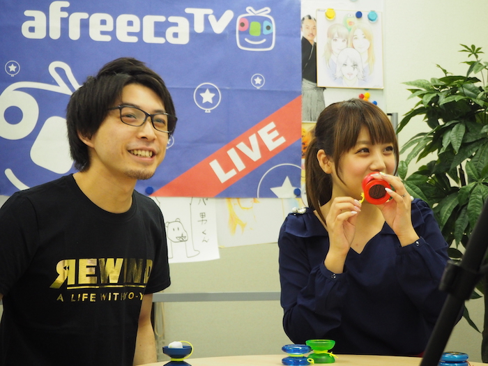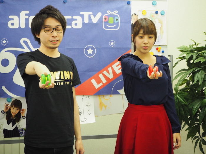 まずは私が、ヨーヨーの説明をさせていただきました。今回は、ヨーヨーファクトリーのビギナー向け機種「スピンスター」と、世界チャンピオンモデル「リプレイ」で本格的にヨーヨーに挑戦!