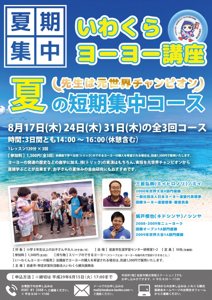 2017年度「いわくらヨーヨー講座」の参加受付が始まりました。事前予約制ですので、参加をご希望の方は下記ページよりご登録ください。