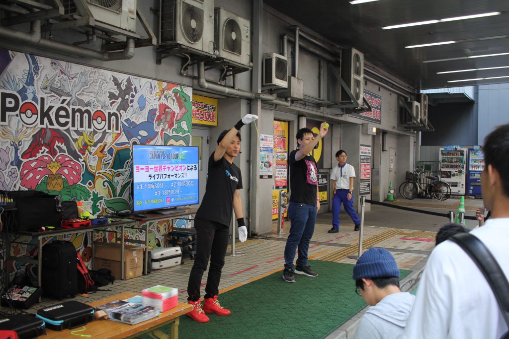 今回城戸さんは世界大会直前ということもあり、メタルヨーヨーを使ったいわゆる「ゴリゴリ」のパフォーマンスを行ったんですが、圧巻のパフォーマンスは道行く人達も足を止めてしまうほど好評で、その後行った体験会でも多くの方にヨーヨーを触っていただくことができ、楽しさが伝えられたのではないかと思います!