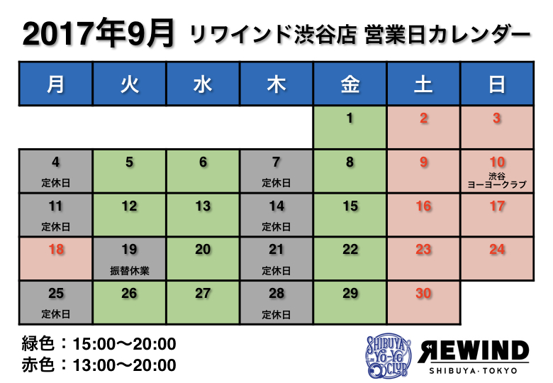 以上、今週の入荷情報・キャンペーン情報でした!暑い日々の後は、悪天候が続きますが、新商品・話題の商品入荷多数のリワインド渋谷店、今週も是非、ご来店下さい〜
