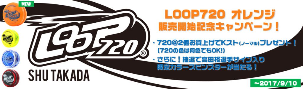 世界大会2連覇、高田柊選手モデル720ジャパンVer.の新色オレンジが待望の発売開始!記念キャンペーンも展開します!話題のCLYW「スノーリザード」、YYF人気商品の新色に、TopYo新作とキャンディーダイス!パワーアップしたアパレルキャンペーンのお知らせも!