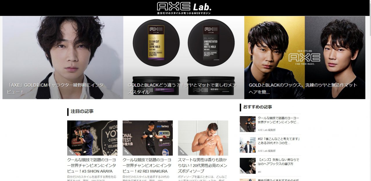 AXE JapanによるWebマガジン「AXE Lab.」にて「クールな競技で話題のヨーヨー世界チャンピオンにインタビュー!」という企画が連載。2016・2017年の世界大会を連覇している「高田 柊」「岩倉 玲」「新谷 紫恩」のインタビューが掲載されています。