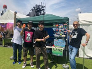 今回のブースはリワインドから上さん、44FESTAからJUNくん、HASSYくん、Deeくん、そしてSHUくん、中村名人、2日目はETOくんも応援に駆けつけてくれました!体験は常時フィーバーでスタッフ一同盛大に日焼けしました…(笑)