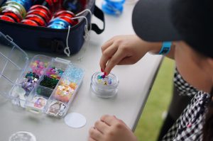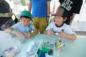 キメラブースでの開催は初!「自分だけのオリジナルヨーヨーを作ろう!」というワークショップを開催しました。こちらで用意したヨーヨーのボディにペイントやビーズなどの小物で装飾してもらい、最後はYOYOFACTORYのトリックショットストリングで紐を作って完成!というコンテンツなのですが、これが今回大人気で100個近い準備数が完売となりました!ちなみに人気ナンバーワン小物は「鈴」でした(笑)