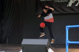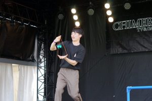 LITステージでは、ヨーヨーパフォーマンス&お客さんを上げての体験会を実施しました!1日目はSHUくんがアンバサダーを務めるDOLLYNOIRE(ドリーノアール)さんの協力で、けん玉パフォーマンスコンビ「ず~まだんけ」のIJI(イージー)さん、そしてフリースタイルフットボールのYO(ヨー)さんが応援に駆けつけてくれました!