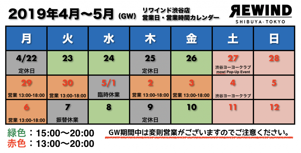 以上、長くなりましたが2019年GWの渋谷店情報まとめでした!