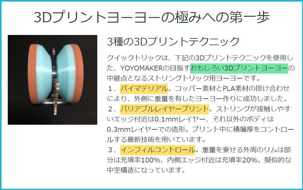 キャンディーダイス プロシリーズの製造元でおなじみ、YoYoMaker(東方氏主宰)より、3Dプリンター製ヨーヨーの決定版「クイックトリック」と「スリーディープ」が渋谷店限定入荷!クイックトリックはコッパー(銅)素材とPLA(プラスチック)素材のバイマテリアルモデルで、大会でも使えてしまうレベル!一方「スリーディープ」は、人気のディープステートをワンドロップ社公認でサンプリングした引き戻しモデルで、サイドエフェクトシステムが使えます!どちらも、3Dプリンターの匠でありヨーヨーを熟知している、東方氏だからこそのコダワリが詰まったモデルです。新たなフェーズに突入した3Dプリントヨーヨーの世界。その性能は、是非手に取っていただき、体感していただきたいと思います!