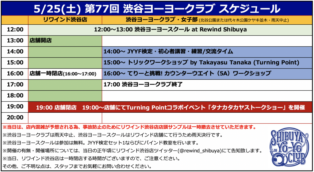 【2019/5/25(土)開催】第77回 渋谷ヨーヨークラブ・ヨーヨースクールのお知らせ!