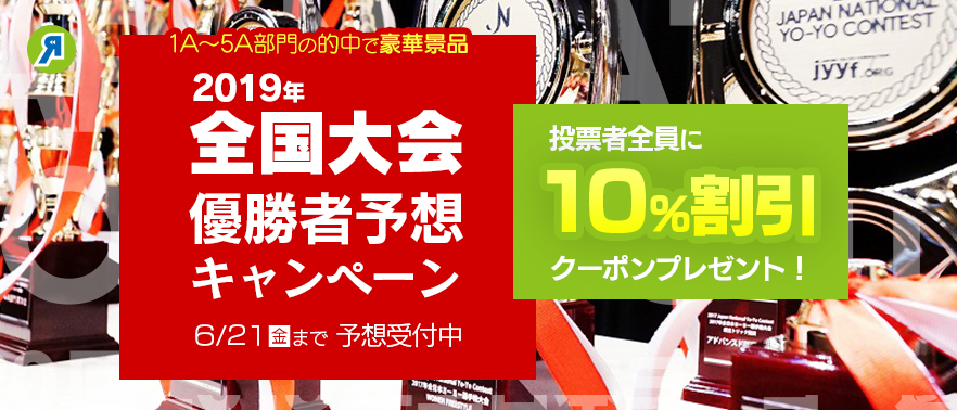 リワインドで開催中の毎年恒例キャンペーン「全国大会優勝者予想キャンペーン」。今年は投票者全員に10%オフクーポンをプレゼント中。クーポンは渋谷店でも使用可能です。全部門的中で豪華商品も当たりますので、是非投票してみてくださいね。詳細は以下のページへ!