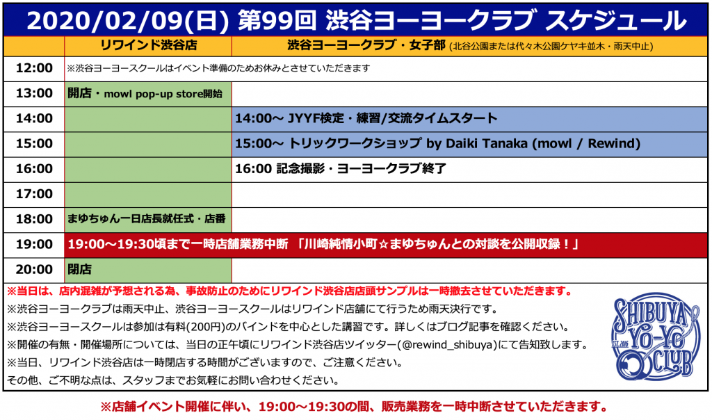 【2020/02/09(日)開催】第99回 渋谷ヨーヨークラブのお知らせ!