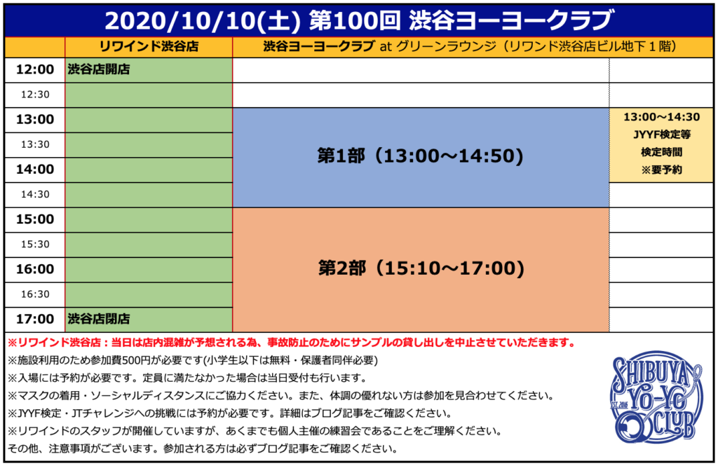 【2020/10/10(土)開催】第100回 渋谷ヨーヨークラブのお知らせ!記念すべき100回目のゲストはリワインドより城戸・岡田・三居です! ※開催場所等変更あり