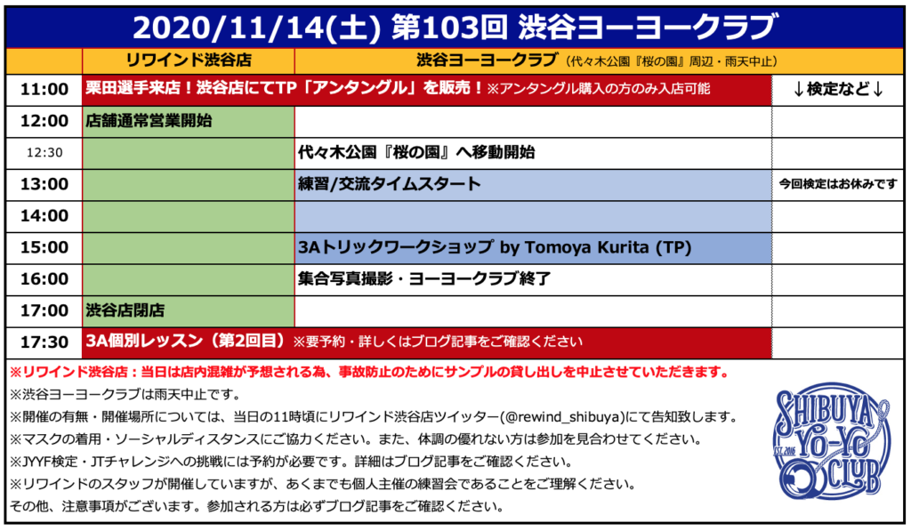 【2020/11/14(土)開催】第103回 渋谷ヨーヨークラブのお知らせ!