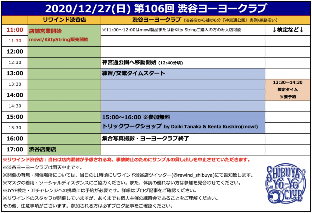 【2020/12/27(日)開催】第106回 渋谷ヨーヨークラブのお知らせ!