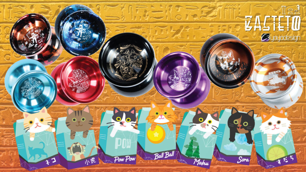 今回、台湾のC3メンバーHobbitの愛猫「ネコ」と「小虎」、SimpsonとC3のアートデザイナーDoroの愛猫3匹「Matsu」「Ball Ball」「Pow Pow」、リワインドの代表ミイの愛猫「そら」、日本ヨーヨー連盟主催公式大会のタイトルスポンサーをしている「クラウドネイティブ」さんの代表「シンジ」さんの愛猫「すだちくん」とコラボ?した、多くのスぺシャルバージョンも登場!お見逃しなく!