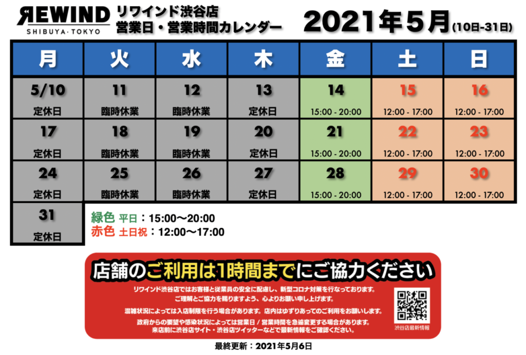 まだまだおうち時間の多い今、より多くの方に楽しんでいただくコンテンツ配信等に注力すべく、5月末まで店舗営業日を縮小しています。来週の渋谷店からの配信は4月26日(水)19時〜を予定。ゲストなど詳細は、近日発表。続報をお楽しみに!