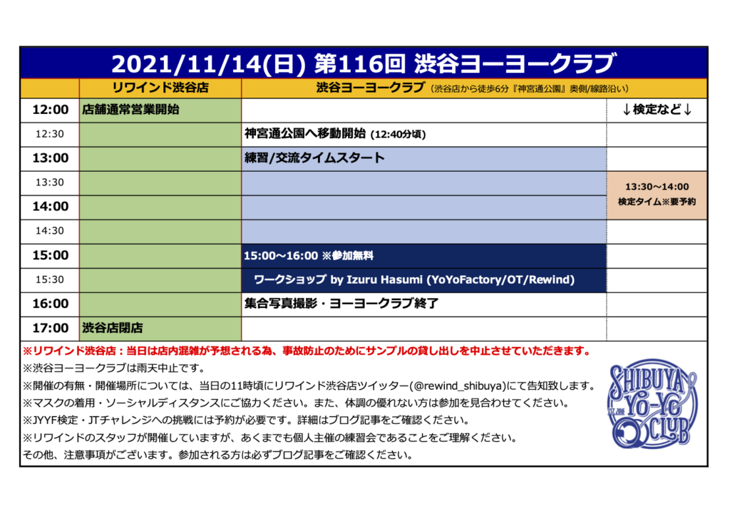 【予告】11月20日(土)は「ジャパンヨーヨーツアーinリワインド渋谷」を開催!!