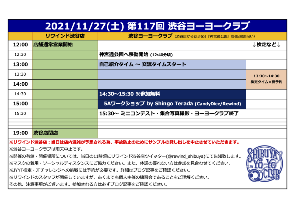 【2021/11/27(土)開催】第117回 渋谷ヨーヨークラブのお知らせ!