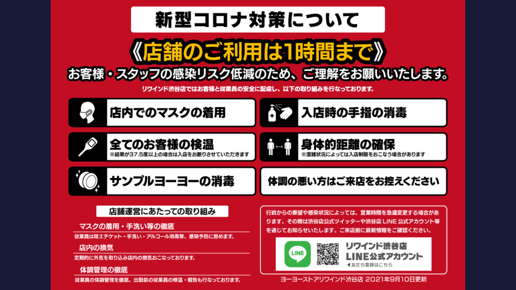 ※今後、やむを得ず営業時間等を変更する場合は、渋谷店公式ツイッターや渋谷店LINE公式アカウント等を通じてお知らせを行いますので、是非ご登録ください。