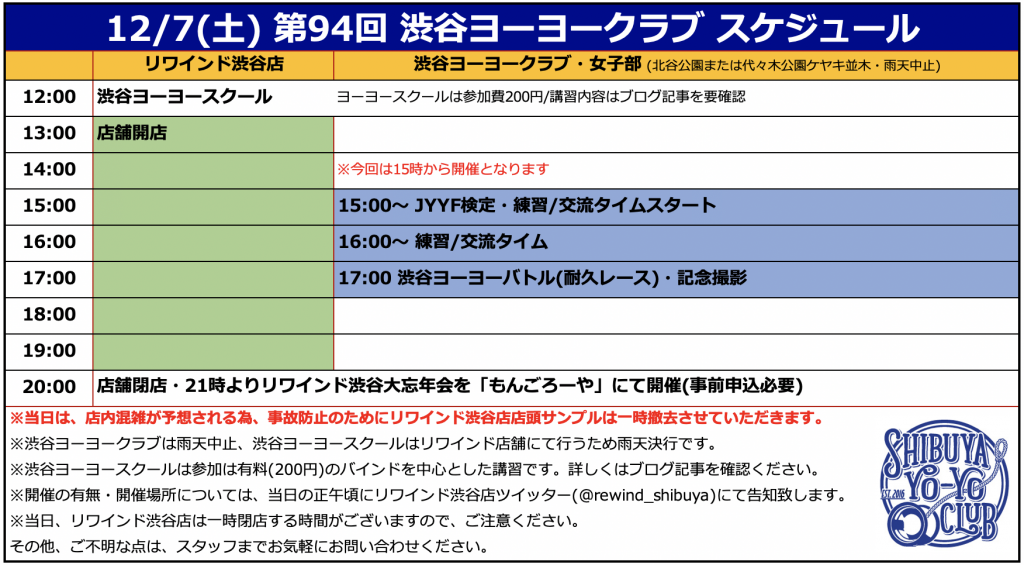 12月7日(土)は渋谷ヨーヨークラブ!