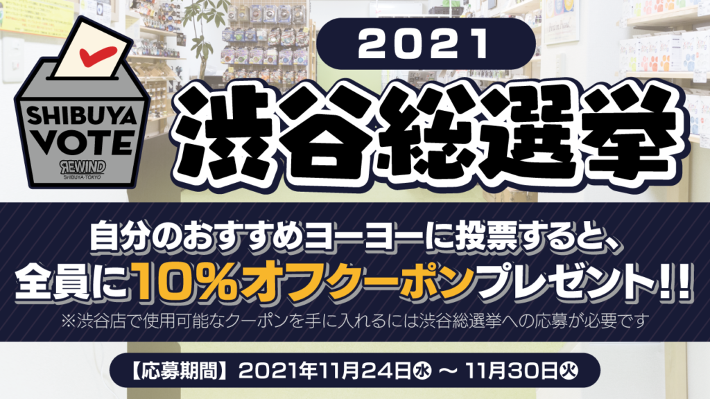 渋谷総選挙では、12月1日(水)の閉店まで使える10%OFFクーポンを配布中!