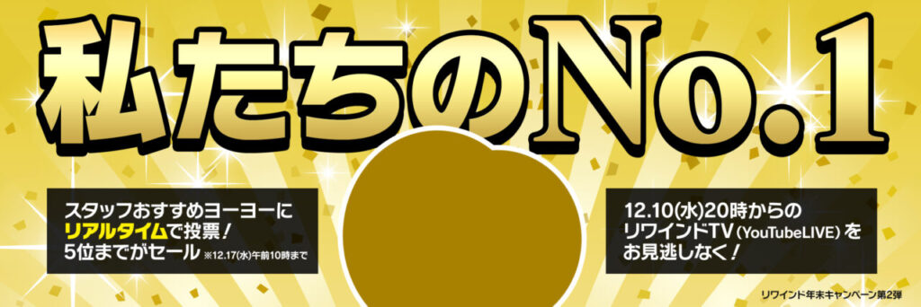 年末の連続キャンペーン『私たちのNo.1』!リアルタイムでキャンペーン商品を決める企画で、対象商品がセールになっています。詳しくはブログで。