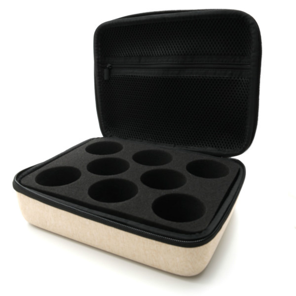 ヨーヨーが8個収納できるセミハードケース。本体色はベージュで、ジッパーがブラックとベージュの2種類あります。