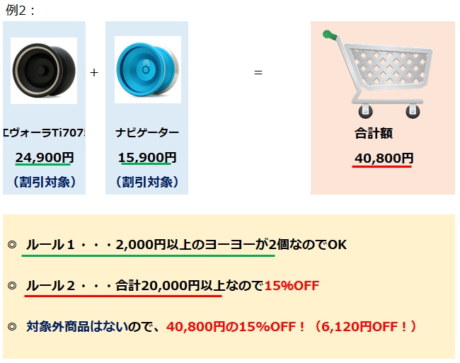 ◎ルール1: 1回のご注文で2000円以上のヨーヨーが2個以上あること(セット商品は除く)