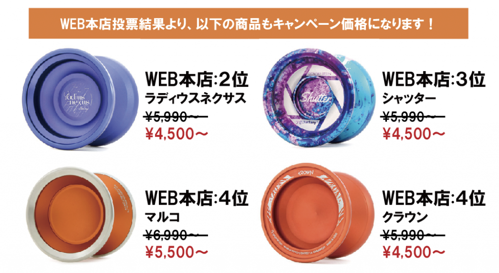 今回の渋谷総選挙キャンペーンでは、上位3機種にプラスして、WEB本店総選挙にて、上位を勝ち取ったアイテムをセール対象とします!